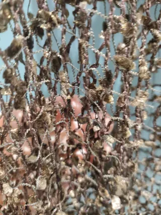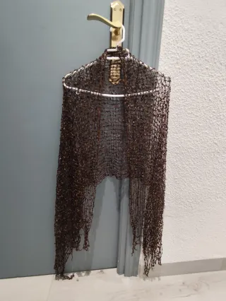 Precioso chal tejido a mano con un diseño intrincado. - Material: crochet. - Color: marrón y dorado.