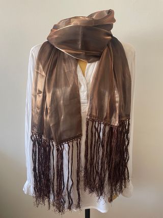 Bufanda de tela marrón con flecos