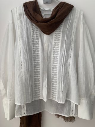 Fular de color marrón claro, a estrenar en perfectas condiciones. Color muy bonito y combinable. Material: 70% viscosa y 30% lana