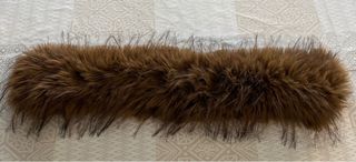 Este es un cuello de pelo sintético en tono marrón, ideal para añadir un toque elegante a abrigos. - Material suave y esponjoso. - Diseño de pelo largo y denso.