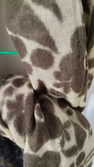 Bufanda con un bonito estampado de lazos en tonos marrones y beige. - Diseño con ondas y detalles de rayas. - Acabado con flecos en uno de los extremos. -super suave, no utilizada -100% acrilico