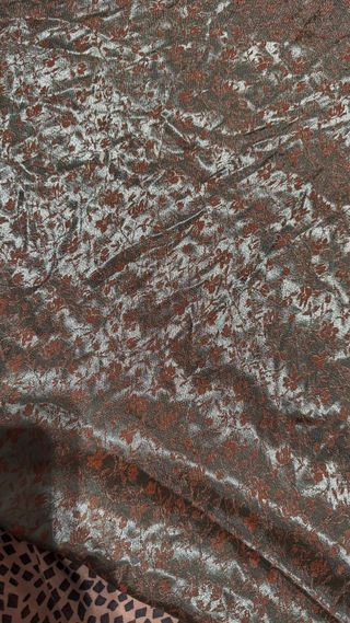 Elegante chal con estampado floral en tonos marrón y plateado. Su diseño le da un toque sofisticado. - Tejido con acabado brillante. - Estampado de flores y hojas. - Tacto suave.
