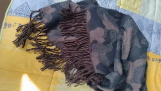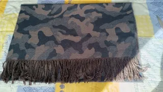 Pashmina con estampado de camuflaje en tonos marrones y grises. Perfecta para el invierno. - Tejido muy suave y calentito - Diseño de camuflaje. - Flecos ambos extremos.