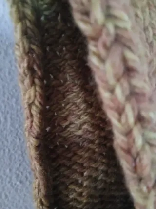 Preciosa braga de punto, elaborada a mano con un diseño único. - Tejido suave y cálido. - Tonos marrones y beige que combinan fácilmente.