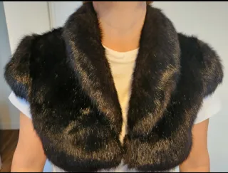 Este cuello de piel añade un toque de elegancia a cualquier atuendo. - Material: Piel sintética. - Diseño curvo y alargado.