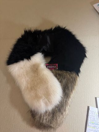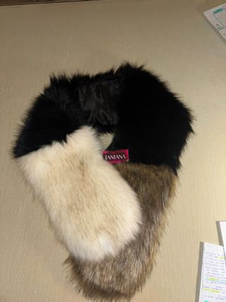 Elegante cuello de pelo sintético, ideal para complementar tu atuendo. - Diseño de tres colores: beige, negro y marrón. - Tacto suave y aspecto lujoso. - Cierre interior para mayor comodidad.