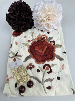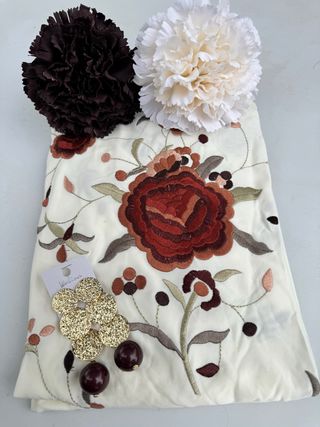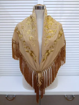Elegante mantón de flamenca con un precioso bordado. - Diseño floral en tonos beige y marrón Medidas 160 cm A estrenar