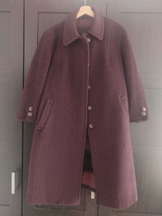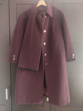 Chaquetón con bufanda de primera calidad. Color granate muy bonito. Como nuevo, usado muy pocas veces. %80 Llama %20 Lana
