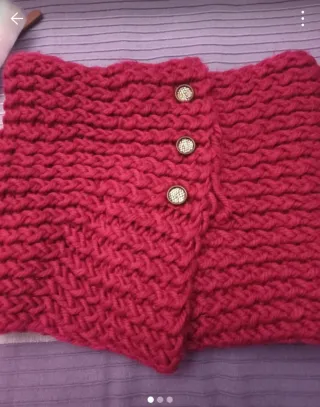 Bufanda tejida para mujer, con un diseño elegante y tres botones decorativos. - Tejido grueso y cálido. - Cierre con botones. - Color rojo vibrante., burdeos Nueva, sin uso