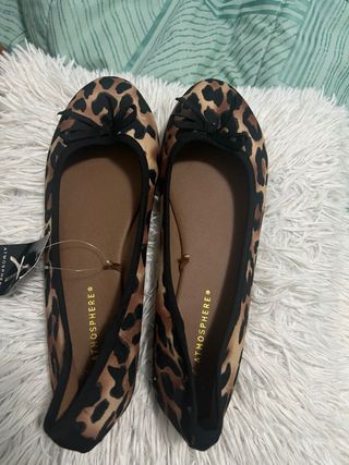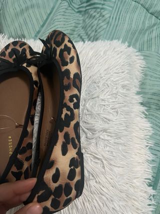 Elegantes zapatos planos con estampado de leopardo Talla 39 Nuevo a estrenar Más calzados de este estilo en mi perfil Dispongo también de bufandas nuevas a estrenar con este estampado para combinar con el calzado ( ver última imagen ) Se realiza lotes ropa precios negociables Envíos rápidos Consulta cualquier duda 🥰 - Diseño de leopardo en tonos marrones y negros. - Detalle de lazo negro en la punta. - Acabado interior en color marrón.