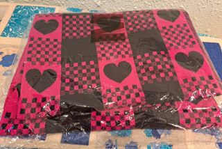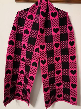 Bufanda mujer Marca M&V Color Rosa fucsia y corazones negros. Medida: 172 largo 29 ancho Composición: Polyester y elastan