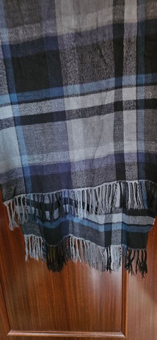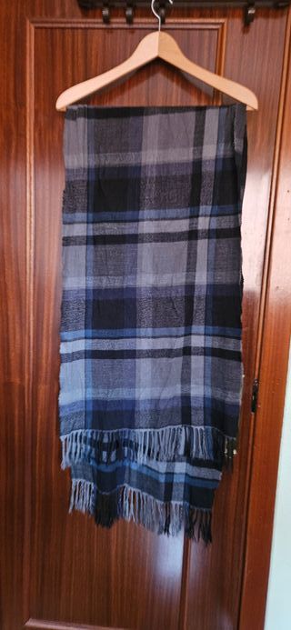 Bufanda de cuadros azul y negro