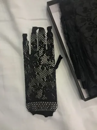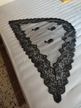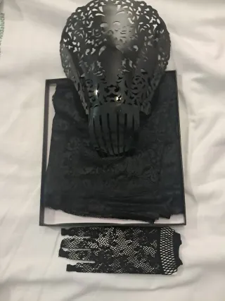 por liquidación por cierre Conjunto de mantilla negra, peineta negra y guantes. Los precios están rebajados al máximo. NO NEGOCIABLE - Mantilla de encaje 220x100cm - Peineta con diseño calado negra - Guantes de rejilla de REGALO