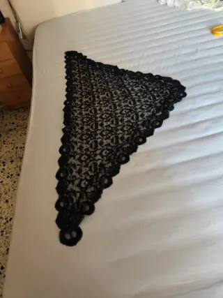 Elegante mantilla con bordado. - Diseño triangular. - Encaje intrincado.