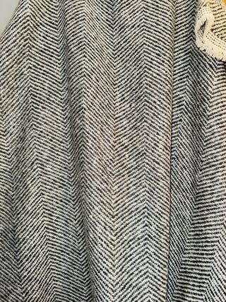 Bufanda o poncho con un diseño de espiga en blanco y negro. Tiene flecos en el borde inferior. - Diseño de espiga. - Flecos decorativos.