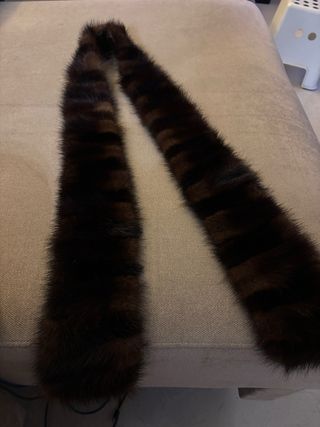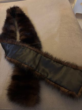 Bufanda de piel de zorro auténtica, con un diseño elegante y natural. Forro de peletería - Piel de zorro genuina. - Tonos marrones y negros. - 130 cm de largo, 10 cm en los extremos y 7 cm en el centro, de ancho.