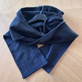 -Bufanda cerrada para el cuello, tejida a mano. -Lana color principal azul y negro con tonos en gris. -Talla Unica. -Sin Estrenar.