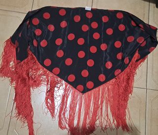 Mantón baile español lunares rojo y negro