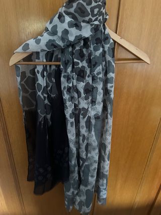 Elegante pañuelo con estampado de animal print. - Diseño llamativo en tonos grises y negros. - Tejido ligero y suave al tacto. - ver medidas largo x 2