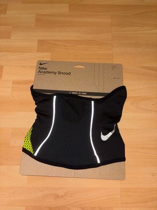 Braga de cuello Nike Academy Snood. - Diseño en color negro con detalles en amarillo. - Logo de Nike visible. - Ribetes reflectantes para mayor visibilidad.