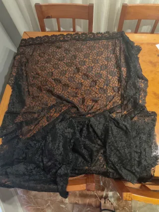 Mantilla negra, encaje, adulto. 2m de largo x 80 cm de ancho. Como nueva. Sólo entrega en mano.