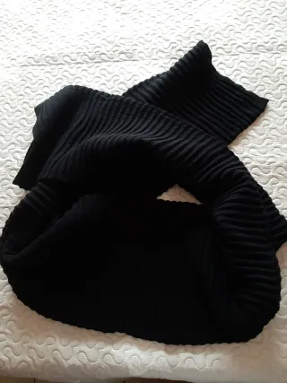 Accesorio versátil que se puede usar como bufanda, gorro o diadema. Su diseño permite adaptarlo a diferentes estilos y necesidades. - Tejido texturizado. - Color negro.