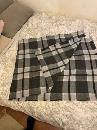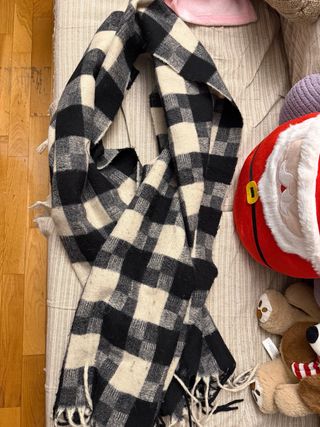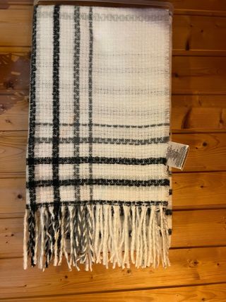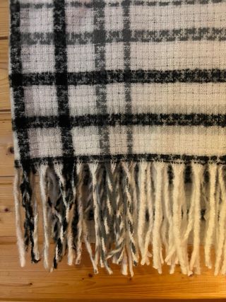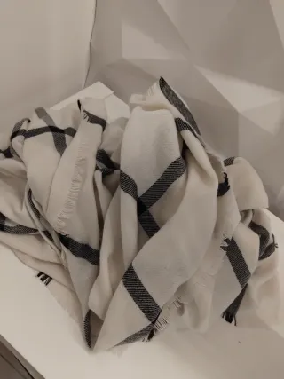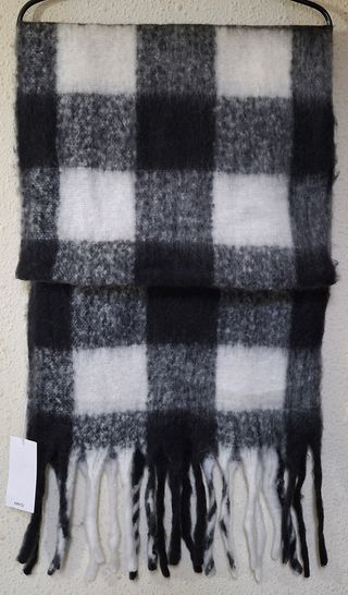 Bufanda con diseño a cuadros en blanco y negro. Perfecta para añadir un toque de estilo. Es super suave!! - Diseño a cuadros. - Flecos en el borde.