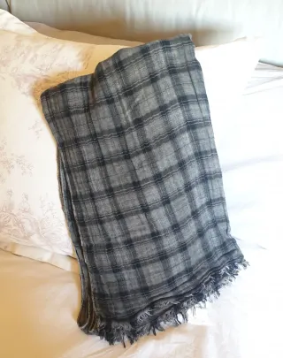 Bufanda reversible de lujo – cachemir, lana y lúrex Elegante bufanda reversible de alta gama. Un lado en mezcla de cachemir y lana, suave, cálido y muy agradable al tacto. El otro lado en tejido con lúrex, con un sutil brillo sofisticado que aporta un toque moderno y elegante. Diseño atemporal en tonos gris y antracita, fácil de combinar tanto con looks casuales como formales. Ideal para otoño e invierno. Se puede llevar de diferentes formas gracias a su caída fluida y su doble cara. ✨ Calidad premium ✨ Muy elegante y versátil ✨ Perfecta como complemento de lujo o para regalar Estado: nueva DE LARGO MIDE 250 cm #bufanda #bufandare