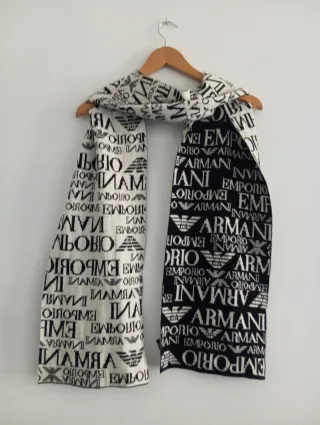 Bufanda de Giorgio Armani con un diseño elegante. - Color negro y marrón - Logo de Giorgio Armani. - Borde con diseño de grecas.