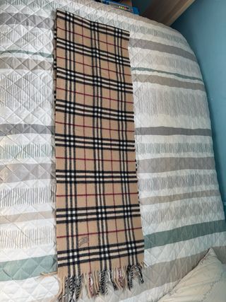 Clásica Bufanda con el icónico estampado Nova Check marròn de Burberry - Diseño a cuadros en tonos marrones, negros, blancos y rojos. - Acabado con flecos en los extremos. - Etiqueta de la marca visible. Usada, en buen estado NO ACEPTO OFERTAS