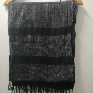 Bufanda con un diseño tejido en blanco y negro. Perfecta para añadir un toque de estilo a tu atuendo. - Textura tejida. - Flecos en los extremos.
