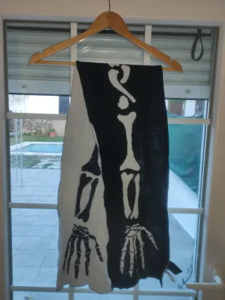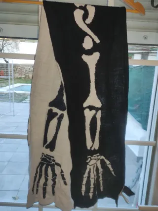 Bufanda con diseño de esqueleto en blanco y negro. Ideal para añadir un toque original a tu estilo. - Diseño de huesos y manos. - Tejido suave y cómodo. - Negociable