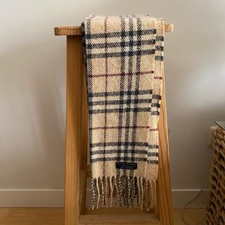 Bufanda clásica de Burberrys con estampado de cuadros. - Diseño icónico. - Tonos amarillos, blancos y negros. - Flecos en los extremos.