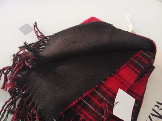 Bufanda fina y abrigada. Roja a cuadros con negro. Medidas aprox: 138cm X 24cm