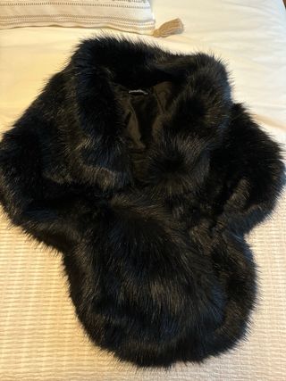 Elegante estola de pelo sintético con un diseño fruncido. - Material: Pelo sintético. - Color: Negro. - Diseño: Fruncido. Usada en dos ocasiones. No requiere tintorería. Comprada en El Corte Inglés. Precio original: 99,95 eur.