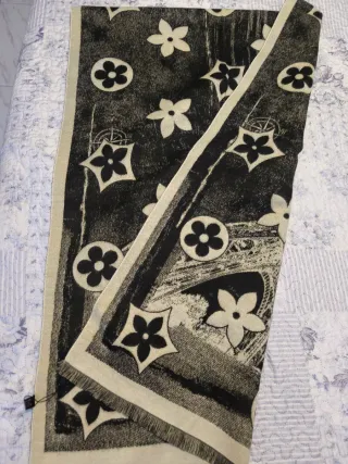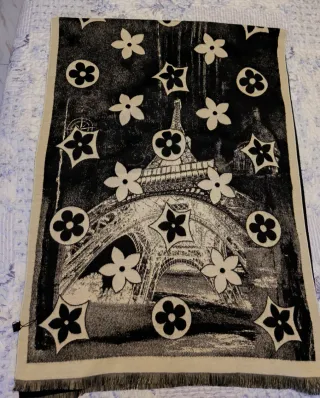 Bufanda con un diseño llamativo de la Torre Eiffel y motivos florales. - Diseño en blanco y negro. - Borde con flecos.//SE ENTREGA EN PERSONA Y TAMBIEN. SE HACEN ENVIOS / PRECIO NADA NEGOCIABLE