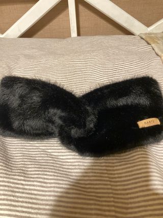 Braga tipo bufanda de color negro y de forro polar. - Material suave y cálido. - Diseño versátil. Se puede regular el ancho. Está en perfecto estado.