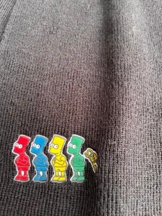 Bufanda de lana negra con un diseño divertido de Los Simpson. Ideal para los fans de la serie. - Personajes de Los Simpson en la parte inferior. - Tejido de lana suave.