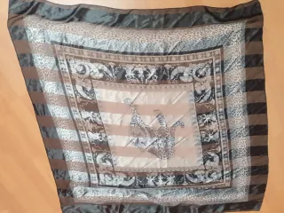 Pañuelo vintage de seda con un diseño cuadrado y estampado. - Medidas aproximadas: [insertar medidas] - Diseño con motivos de animales y grecas. - Tonos tierra y detalles en negro. Pañuelo vintage carré, cuadrado medidas aproximadamente 120 cm Con leopardo 🐆, print animal, tonos marrón y negro. Como nuevo