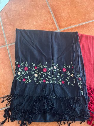 Mantón negro bordado rojo