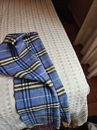 Bufanda de la marca Burberry con diseño de cuadros. - Diseño clásico a cuadros. - Tonos azules y beige.