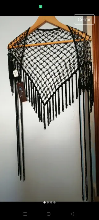 Mantoncillo negro con flecos