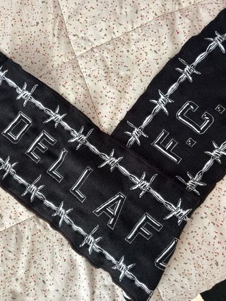 Bufanda de la marca Dellafuente con diseño de espigas. - Tejido negro con detalles en blanco. - Diseño de alambre de espino. #dellafuente