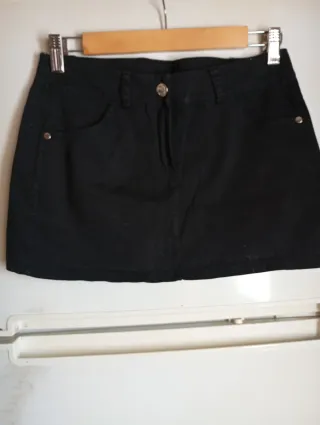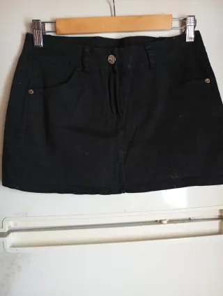 Falda de tela negra con un diseño moderno. - Cremallera en la parte trasera. - Corte A. - Tejido cómodo y resistente. Con apenas un uso, sienta muy bien Regalo una bufanda con la compra de más de un producto de mi perfil