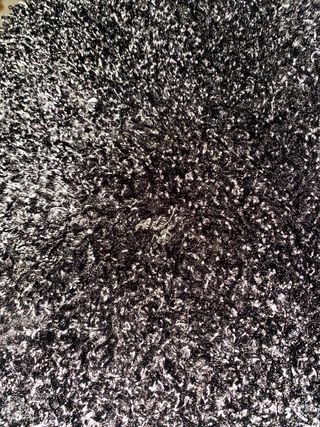 Bufanda tejida de color negro con un acabado de flecos en uno de los extremos. - Material suave y cálido. - Diseño versátil.