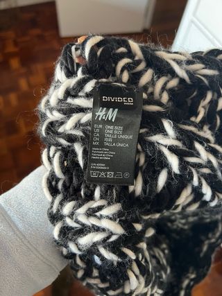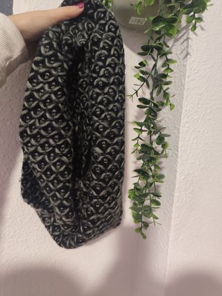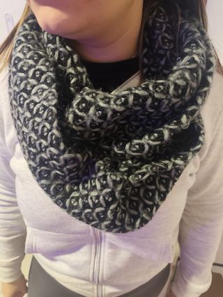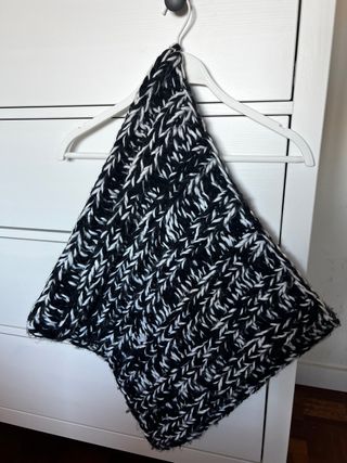 Cuello de lana con un diseño tejido en blanco y negro. Es un accesorio cálido y con estilo. - Tejido grueso. - Diseño jaspeado.