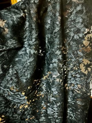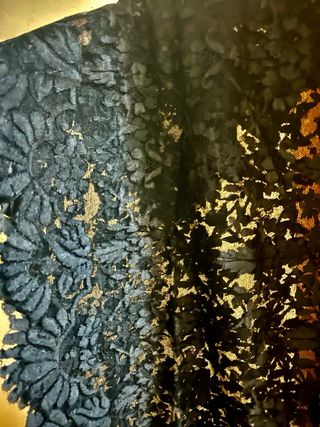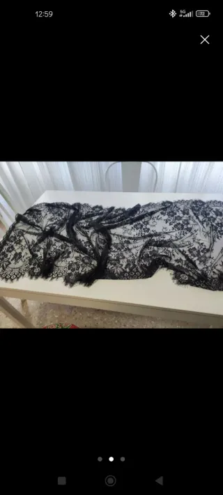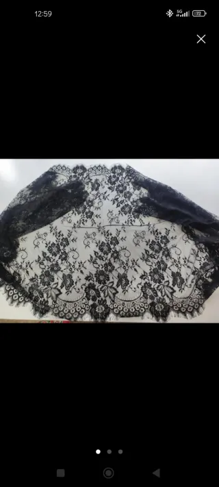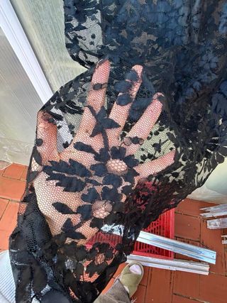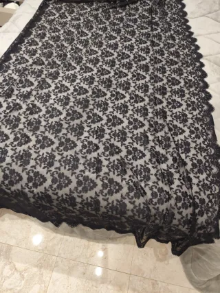 Mantilla elegante de encaje negro. - Diseño con volantes en el borde. - Tejido de encaje floral. - Solo se ha usado una vez. - Está como nueva.