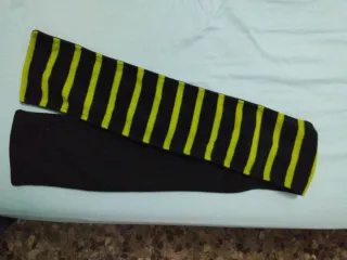 Conjunto de invierno con bufanda, gorro y manoplas a juego. El diseño a rayas le da un toque divertido. - Bufanda a rayas. - Gorro con pompón y rayas. - Manoplas a juego con rayas. Negro y verde pistacho