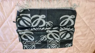 Elegante pashmina con el distintivo estampado de Loewe. - Diseño en tonos negro y gris. - Acabado con flecos. 160 x 60 cm