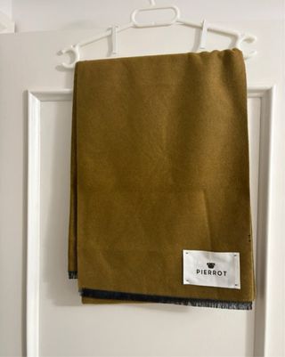 Bufanda Pierrot nueva sin estrenar Bufanda de la marca Pierrot, en color mostaza / verde oliva con detalle negro en los bordes. Tejido suave, elegante y muy combinable tanto para looks casual como más arreglados. Nunca usada, en perfecto estado. -Tamaño: estándar (ideal para llevar al cuello o sobre los hombros). -Estado: Nuevo, sin estrenar. -Precio original: 20 €.